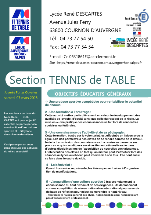 Accueil » Lycée Descartes Cournon d’Auvergne Actualités Générales Lycée Descartes Cournon d’Auvergne Partager ceci Article précédentStage Régional février 2026 Article suivantCoupes et Championnats Régionaux 2026 : les résultats il y a 1 mois