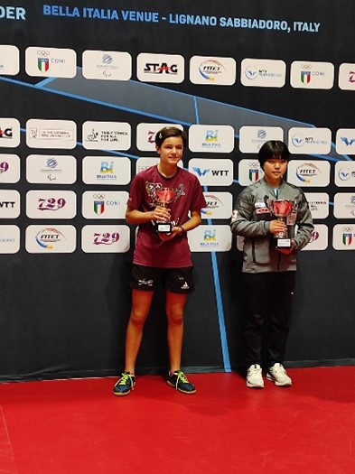 Yue Yan Liu : elle atteint les ¼ de finale en U11 et son parcours prend fin en poule en U13. Cette première expérience sur un WTT, lui a permis de se confronter aux meilleures internationales dans ces catégories d’âge.