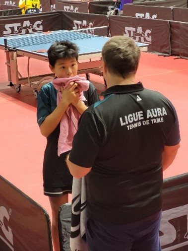 De gauche à droite : Alexia Nodin TT Gerland, Yue Yan Liu Ambilly et Frédéric Guérin Conseiller Technique de Ligue Auvergne-Rhône-Alpes de Tennis de Table.